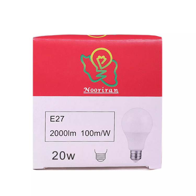 لامپ 20 وات نور ایران در درجه رنگ های 3000 ( آفتابی) و 6500 ( مهتابی ) تولید می شود . ولتاژ مناسب این لامپ 185 الی 265 ولت می باشد . و سایز سرپیچ E27 مناسب است . نور واقعی این لامپ حداقل برابر با 13.5 وات و حد اکثر 15.5 وات است .