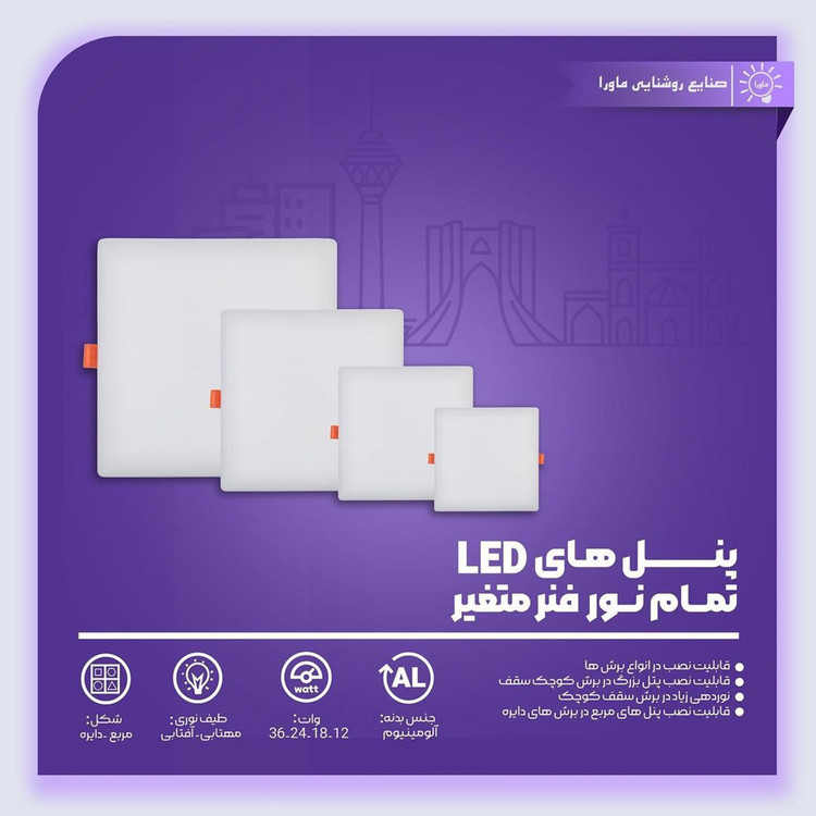 پنل های تمام نور یا همان فول لایت صنایع روشنایی ماورا به گونه ای طراحی شده است که به دلیل داشتن فنر متحرک این قابلیت را دارد که در تمامی سایز ها و مدل برش ها نصب شود. بدنه این محصول از جنس آلومینیوم می باشد در نتیجه حرارت به خوبی جذب می شود و عمر LED افزایش می یابد درایور همراه کالا نیز ایزوله میباشد که باعث می شود در نوسانات برق شهری دچار آسیب دیدگی نشود. کلیه محصولات صنایع روشنایی ماورا فاقد فیلیکر یا سوسو زدن می باشد که باعث عدم خیرگی می شود.